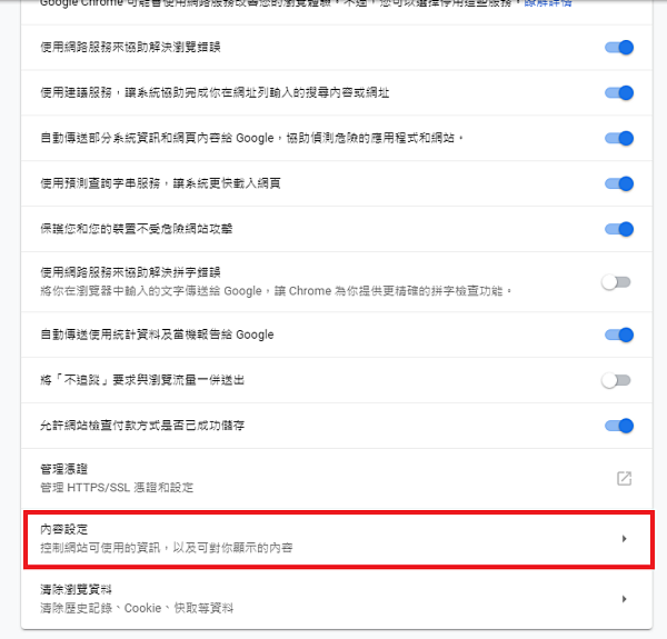 步驟2: 點選內容設定。