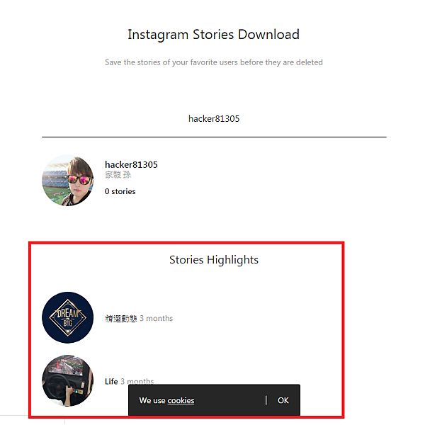 只要您在StoryIG中輸入想要偷看對象的IG帳號且對方並無設定為隱私帳號,那您就能讀取到其IG帳號內所有的限時動態,且因為您並沒有在 storiesig 網站上登入您的IG帳號,限時動態的瀏覽者也就不會留下足跡,這樣他就無法得知到底有誰偷看過他的IG限實動態了。